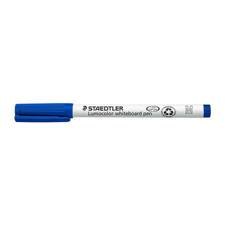 Staedtler Lumocolor Whiteboard Marker Blue Bx10 is ideal for the classroom, workplace or home. The markers have an innovative ink technology that allows you to leave a marker uncapped for up to 8 hours at a time without it drying up.